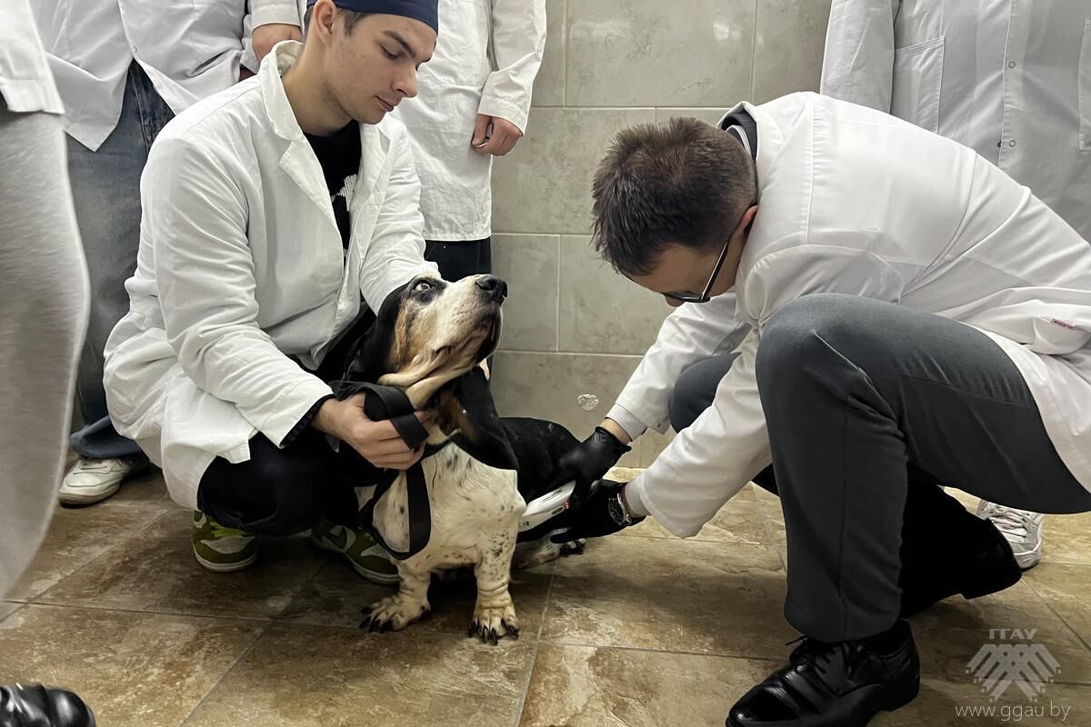 На занятии обследовали двух собак пород: бассет-хаунд и кане-корсо. Согласно информации, полученной от владельцев: животные нагрузки переносят нормально, активные, без изменения аппетита. После общего исследования состояние сердца оценили с применением ультразвука. Студентам преподаватель показал этапы подготовки собак для УЗИ, продемонстрировал проекции, в которых принято оценивать сердце. Обучающиеся увидели, как в момент циклических сокращений и расслаблений (систола и диастола) работает сердце, как работают сердечные клапана, обеспечивающие движение крови только в одном направлении, как изменяется скорость кровотока. Для проведения измерений использовался весь функционал УЗ-аппарата. Преподаватель применял термины, которые неформально используют кардиологи при визуализации сердца - "грибочек", "рыбий рот", "мерседес", "лезвие кинжала", "свечка", "струна", все эти слова имеют смысл для описания проекции, структур сердца, скорости потока крови при использовании ЭхоКГ (эхокардиография). Профессиональное объяснение в доступной форме помогает студентам и будущим специалистам осваивать клиническую ветеринарию и побуждает к изучению специализированных дисциплин.