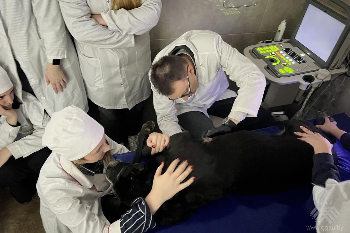 4 ноября 2025 года декан ФВМ, О.Н. Воронис посетила практическое занятие доцента кафедры акушерства, терапии и гигиены животных, Дмитрия Владимировича Воронова по «Клинической диагностике». Занятие проходило со студентами 3 курса ФВМ на базе ветеринарной клиники кафедры анатомии животных «UniВетЭксперт». Тема занятия: «Специальные методы исследования сердечно-сосудистой системы у животных: УЗИ, ЭКГ, рентген».