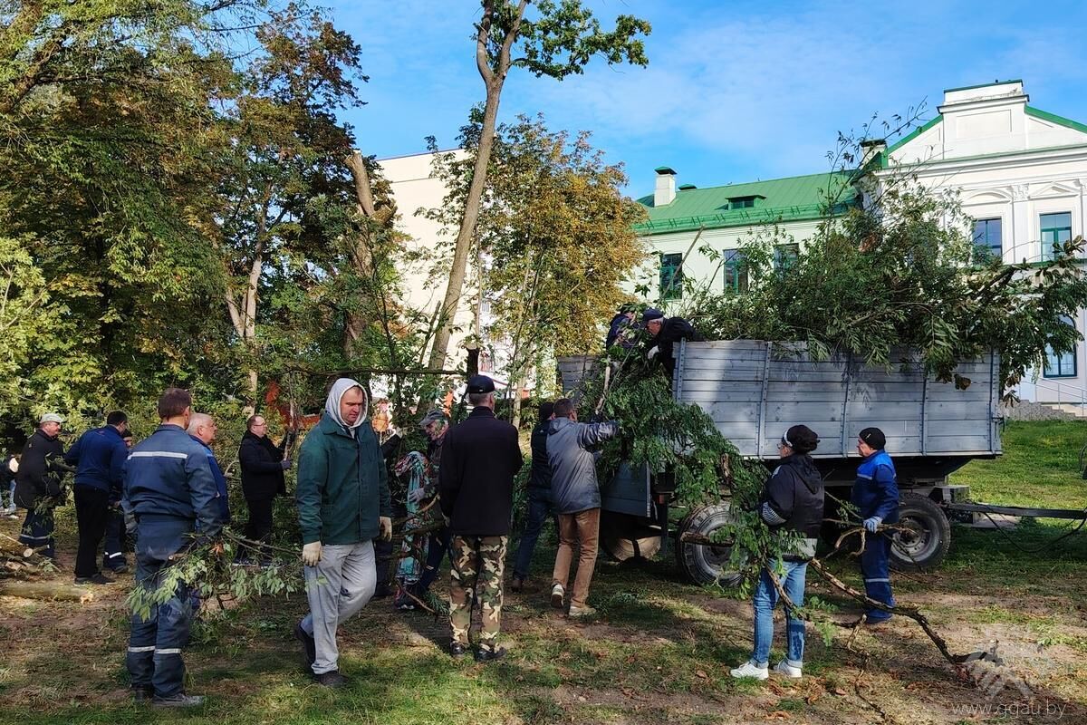 Ими были распилены ветви деревьев, подметены дорожки, вывезен мусор, а также они выполнили другие необходимые работы по благоустройству участка перед корпусом растениеводства.