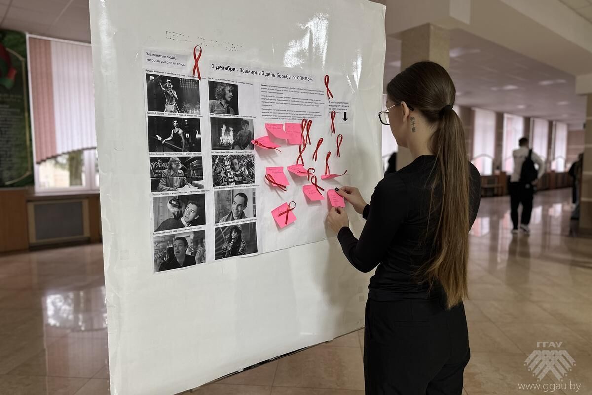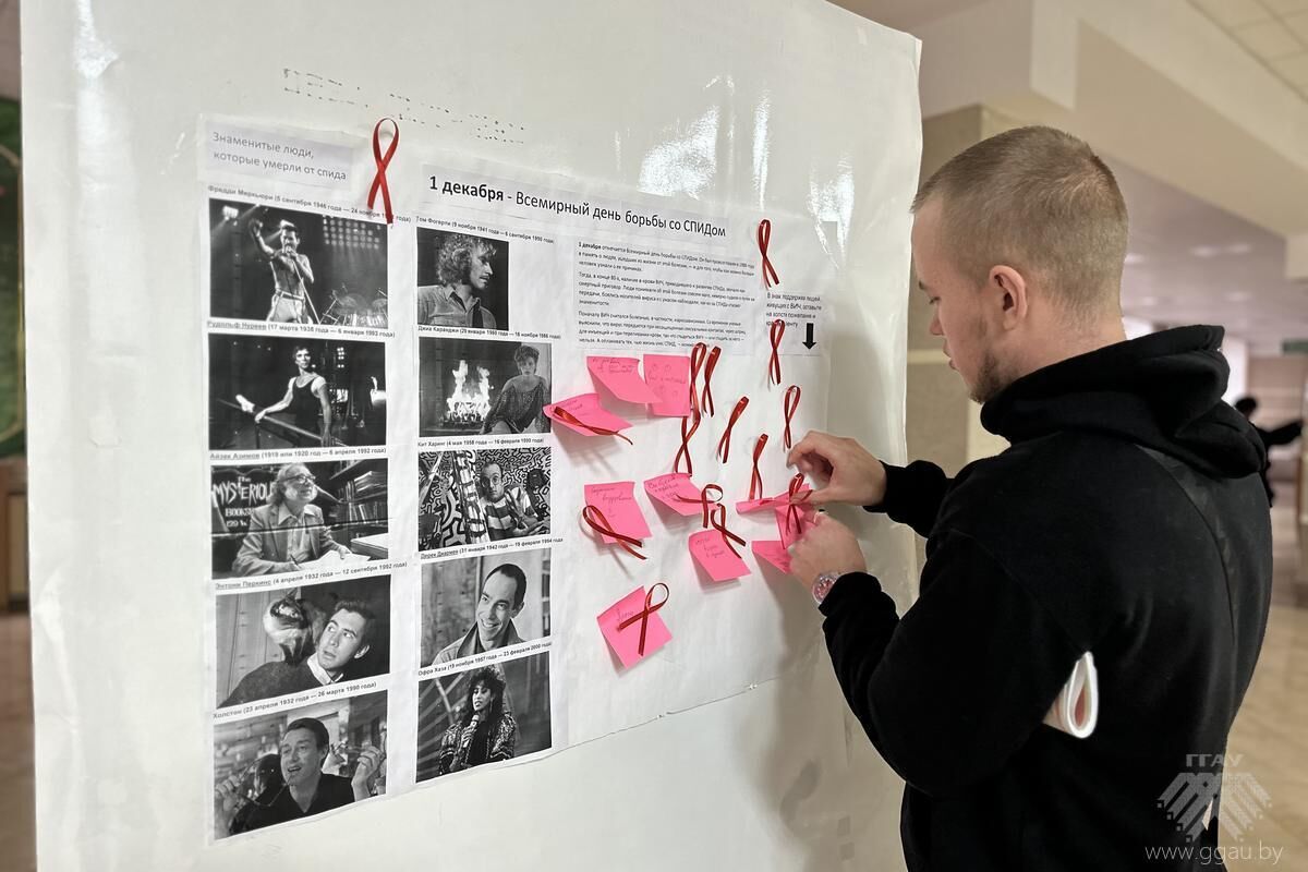 Центральным событием стала интерактивная акция в главном корпусе университета. Психологи создали символическое арт-пространство – большой холст, на котором были размещены фотографии знаменитостей, чьи жизни унесла болезнь. Фредди Меркьюри, Рудольф Нуреев, Айзек Азимов и многие другие гениальные артисты, танцоры, ученые... Их судьбы – напоминание о том, что вирус не делает различий, и о том, как много мир потерял из-за этой эпидемии.