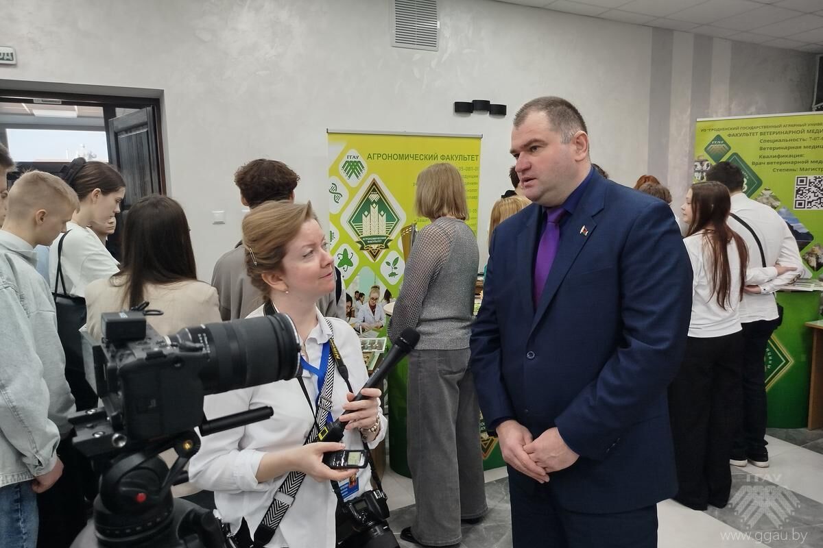 Напомню, что данные мероприятия были проведены по инициативе первого заместителя облисполкома, Ю.Н. Валеватого, совместно с комитетом по сельскому хозяйству и продовольствию Гродненского облисполкома во главе с председателем, И.А. Сорокиным и ректором УО «ГГАУ», В.В. Пешко. Профориентационные мероприятия организовали для того, чтобы привлечь профессионально ориентированных абитуриентов в Гродненский аграрный университет и обеспечить кадрами агропромышленный комплекс Гродненского региона.