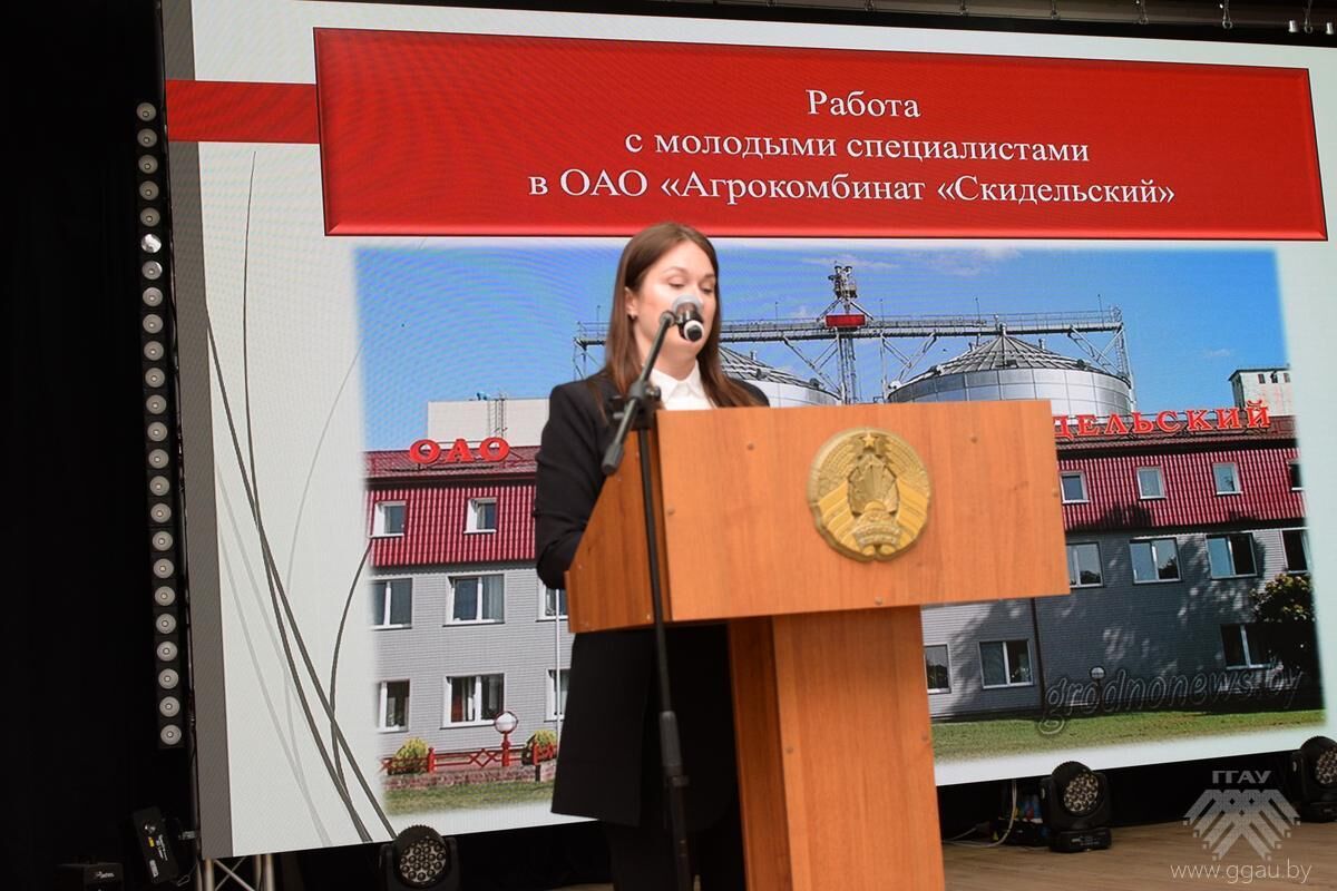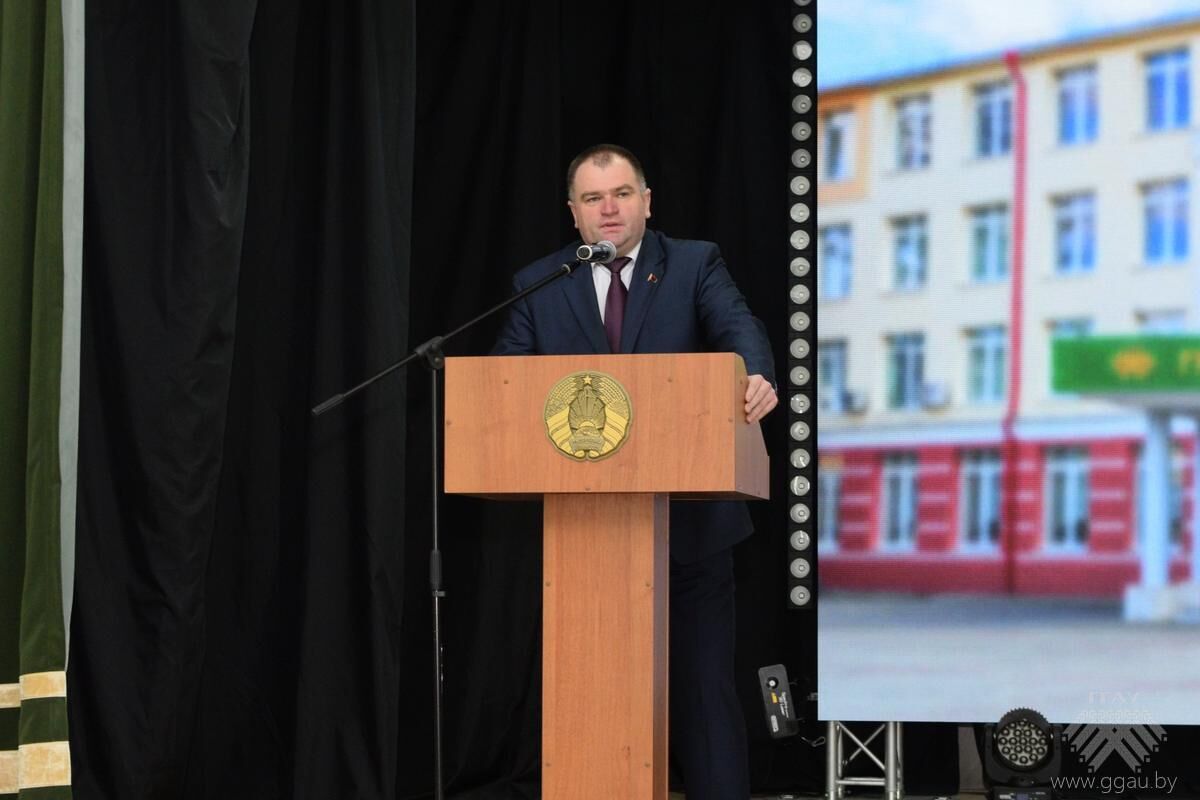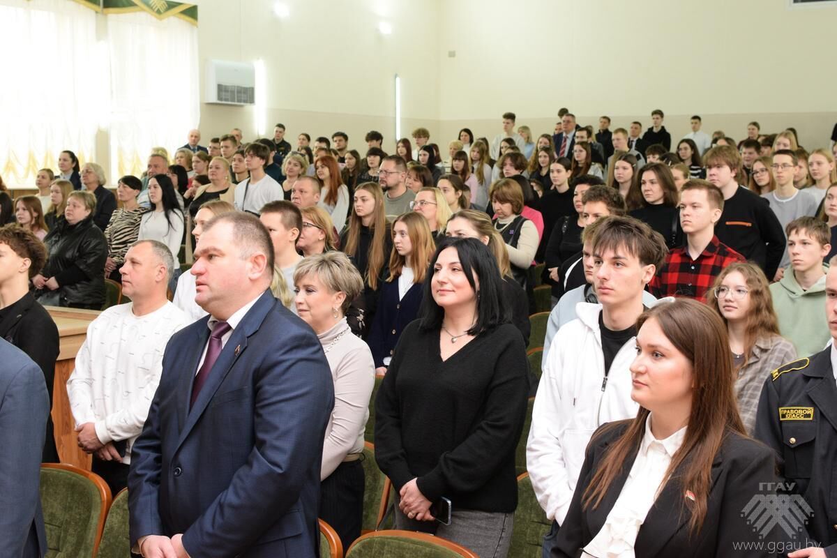 Перед присутствующими в зале выступили: ректор университета В.В. Пешко, декан факультета довузовской подготовки и профориентационной работы В.И. Поплевко, заместитель директора по идеологической работе ОАО «Агрокомбинат «Скидельский» С.Н. Крамак, начальник отдела кадров ОАО «Слонимский мясокбинат» Т.В. Соколовская, студентка агрономического факультета Д. Лицкевич. Музыкальное приветствие прозвучало от солистки студии «Арт sound» В. Гаук. Закончилось мероприятии гимном учреждения образования «Гродненский государственный аграрный университета» - «Адна на ўсіх зямелька маці…».