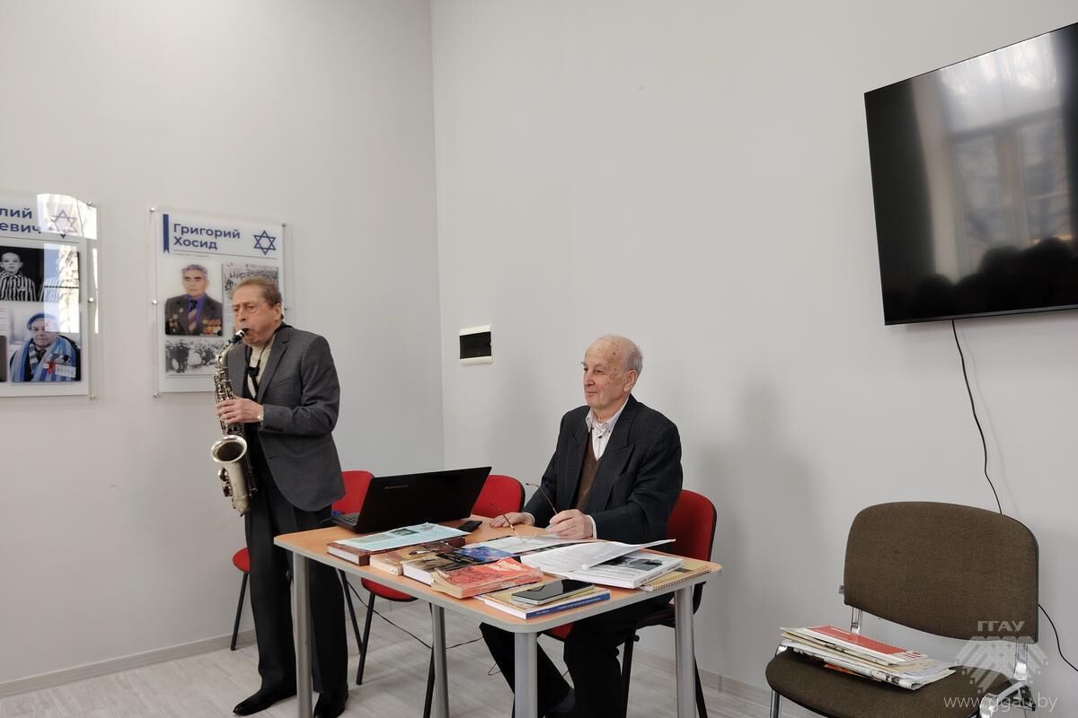 Участники встречи узнали новые факты и услышали истории из уст очевидцев тех страшных событий. Рассказ сопровождался пронзительным видеорядом и игрой на саксофоне в исполнении Геннадия Яковлевича Левина.