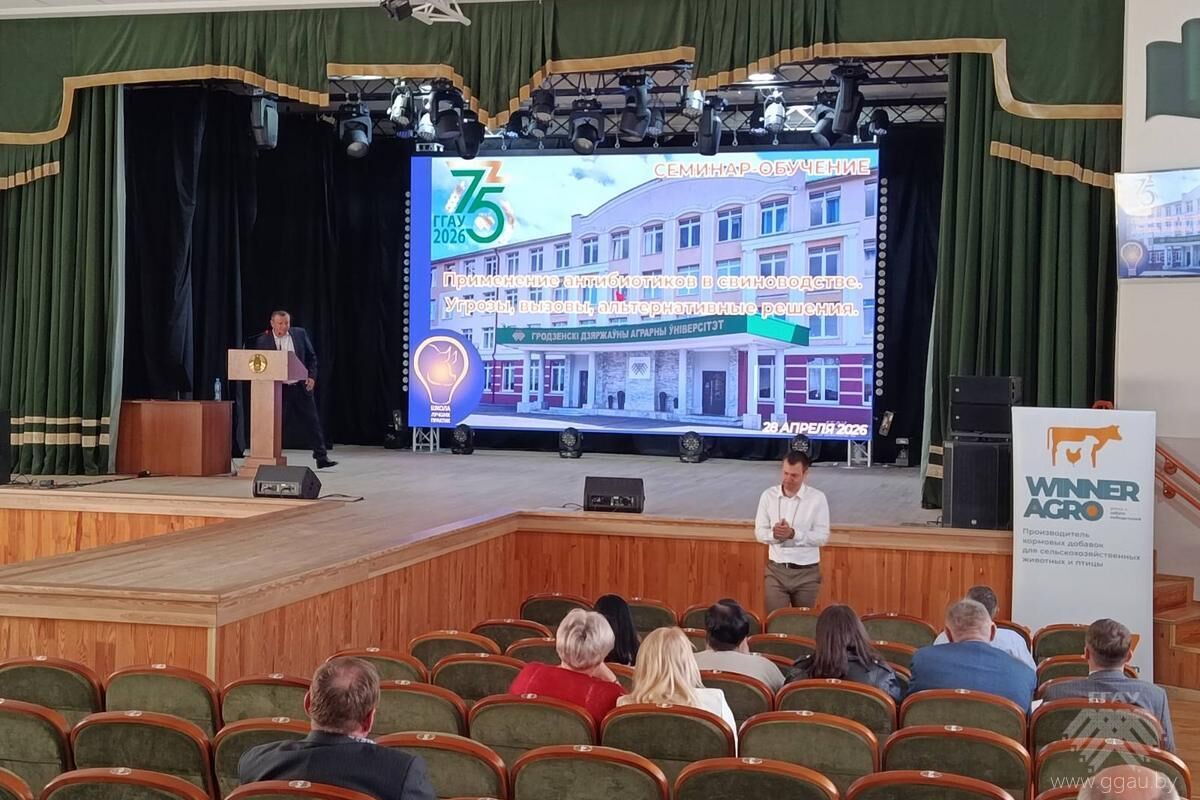 28 апреля 2026 года на базе УО «Гродненский государственный аграрный университет» прошел республиканский семинар «Применение антибиотиков в свиноводстве. Угрозы, вызовы, альтернативные решения». Для участия в работе семинара было приглашено более 50 специалистов и ученных, работающих в данном направлении отрасли животноводства.